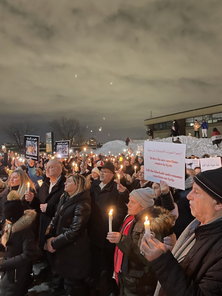 Hundreds of Syrian-Canadians gathered in front of the former Syrian consulate in Montreal, demanding urgent support for Syria, they lit candles and prayed for the victims and their families and for those who are still stuck under the rubble.