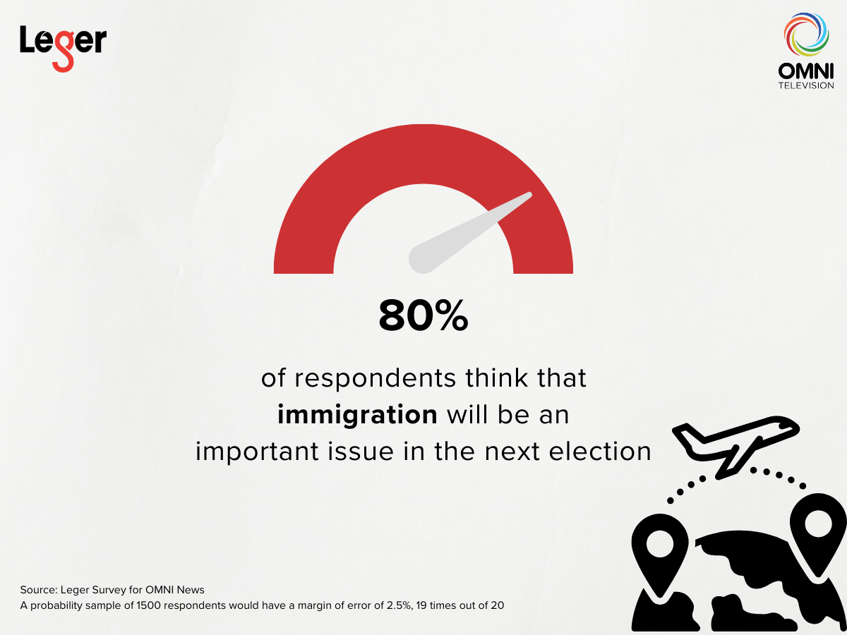 The OMNI-Leger poll found that 8 in 10 immigrants believe immigration will be an important issue in the next federal election, while over half of respondents said immigration policies put forward for the election will influence the way they vote.