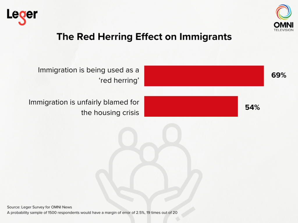 A poll commissioned exclusively for OMNI by Leger found that nearly seven in 10 new Canadians think politicians are using immigration as a “red herring” to distract from other factors contributing to the lack of affordable housing, such as government policies and economic conditions.
