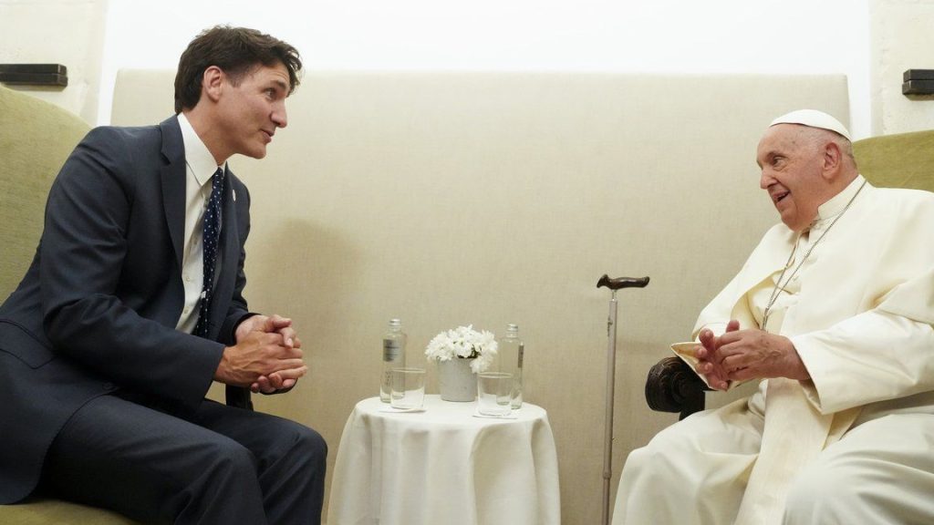 Pope Francis met with Prime Minister Justin Trudeau on Friday at the G7 summit, where the pontiff warned leaders about the dangers of artificial intelligence and counselled them to centre humanity in its development.