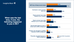 Vancouver, BC —Given the recent rise in anti-Asian racism that has been reported on in Canada and the USA, Insights West undertook the largest poll of Asian British Columbians of this kind and discovered that concerns and personal experiences with racism in the past year are extremely pervasive. Anti-Asian racism has increased dramatically since the pandemic began and has personally impacted a large number of Asian British Columbians.